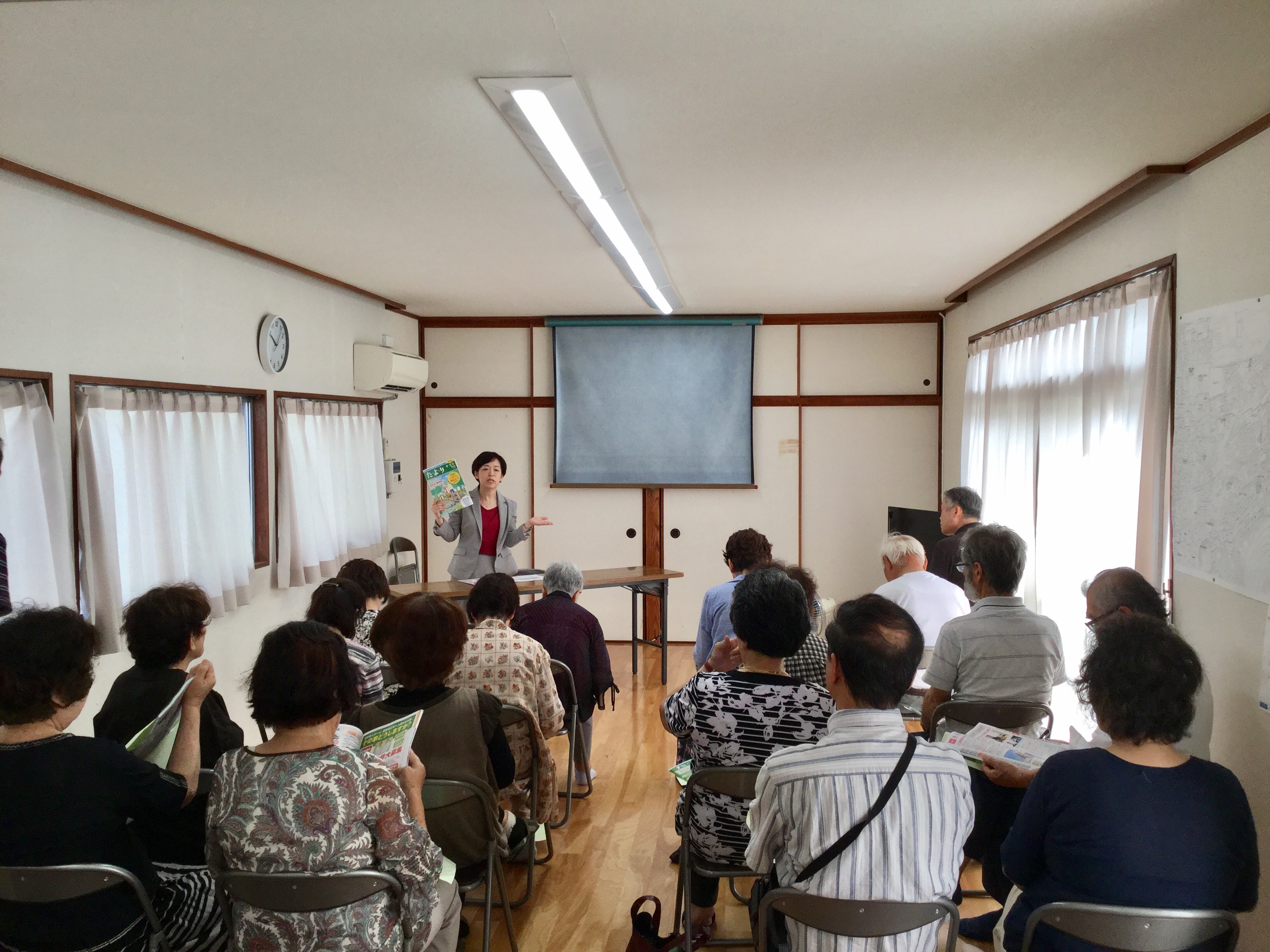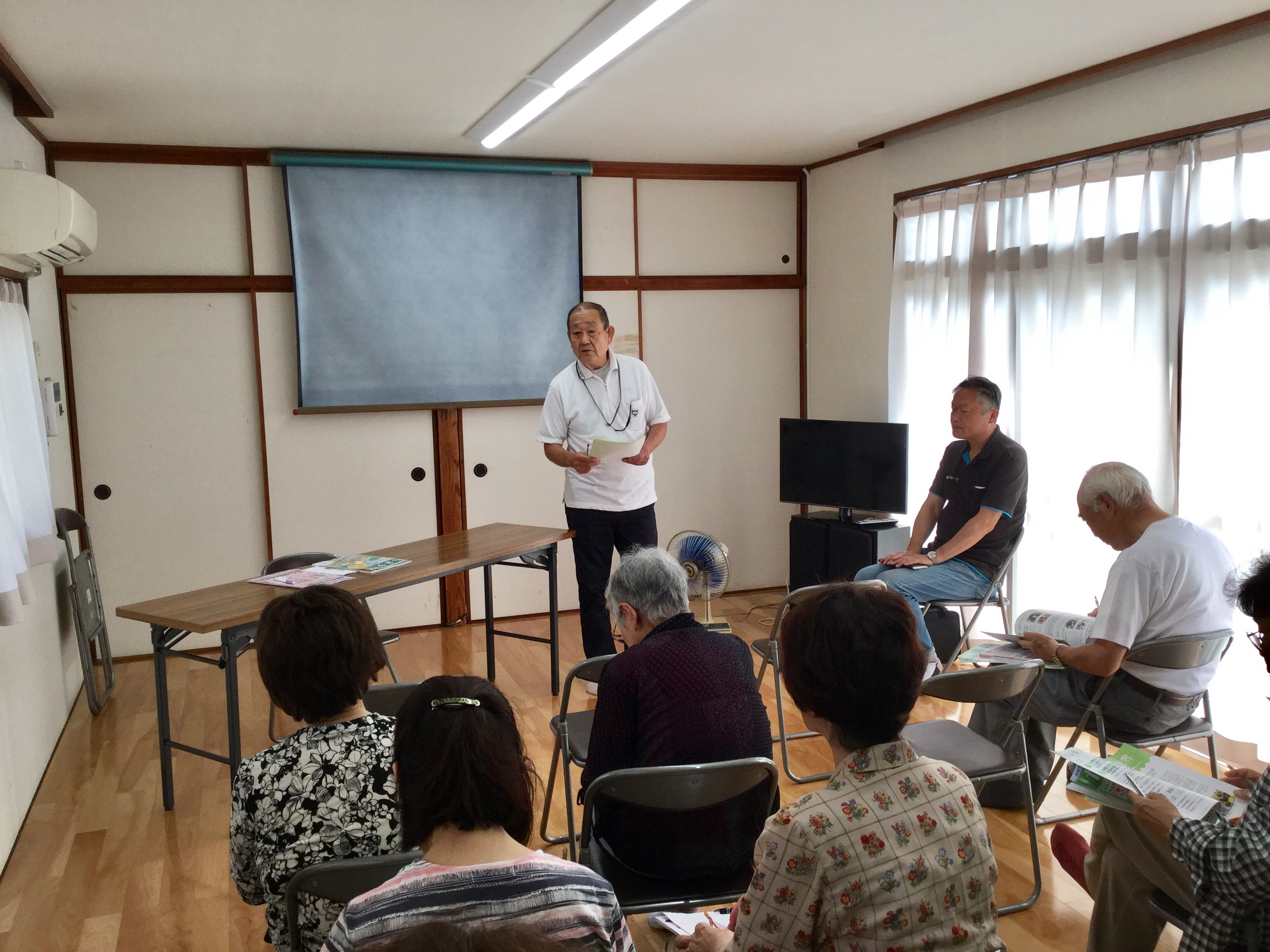ご連絡いただいた管理者の冨田様の挨拶から始まり、高齢者向け住宅についての出前講座を開催。まずは、弊社が行っている案内センター業務のご紹介をしました。