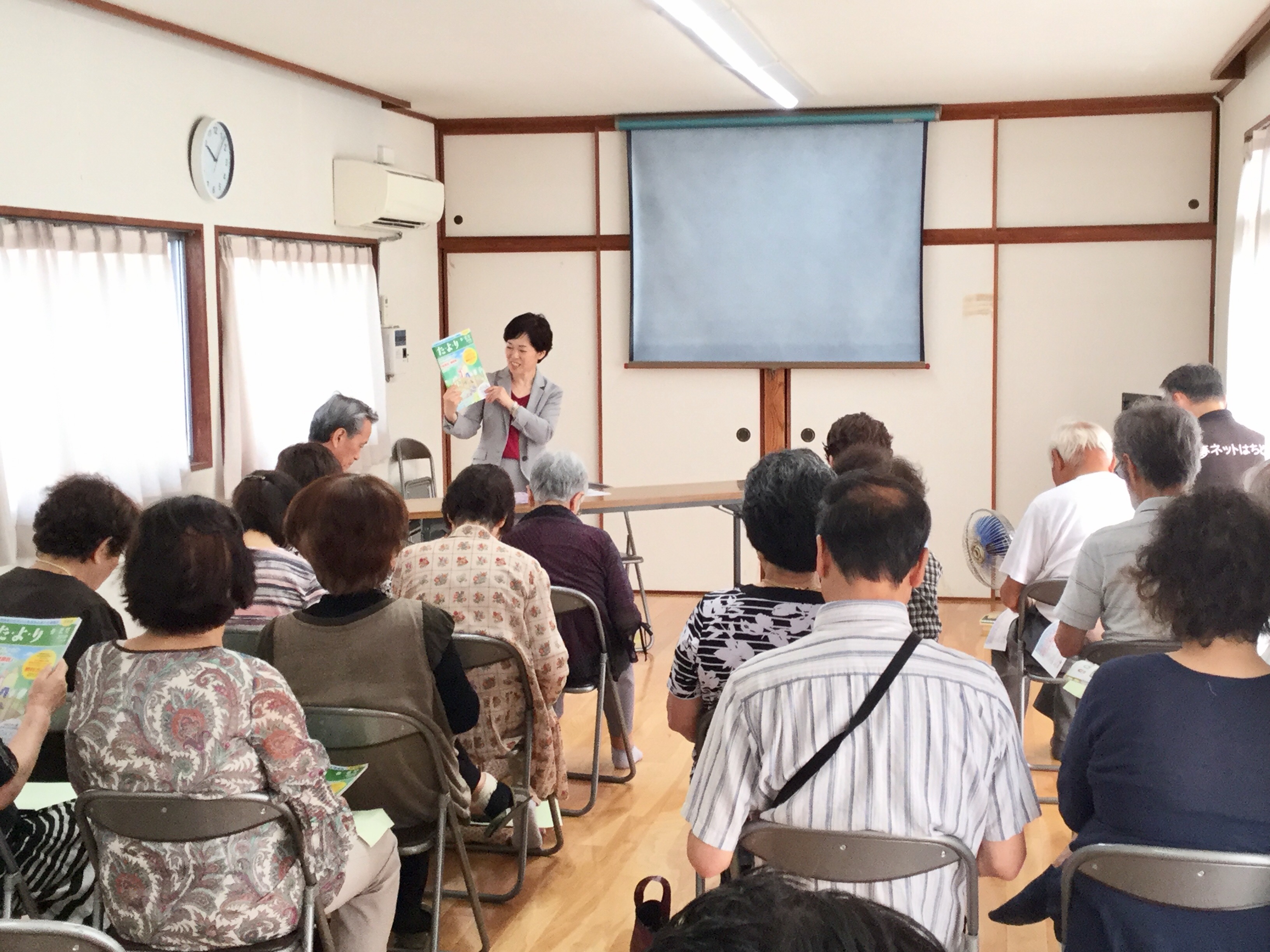 さて先日、居宅支援事業所・ヘルパーステーション「青い鳥」で出前講座を行いました。青い鳥さんでは月に1回程度、勉強会や研修を行って職員の皆さんのスキルアップを図っているそうです。ケアマネやヘルパーさんなど12名にご参加いただきました。