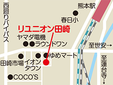JR鹿児島本線「熊本駅」新幹線口より車で5分、産交バス「田崎市場前」バス停より徒歩3分